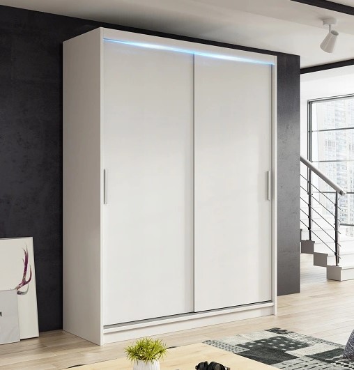 Šatní skříň Nico I kombinuje moderní design s praktičností. Ideální pro minimalistické interiéry, posuvné dveře šetří prostor a dodávají eleganci.