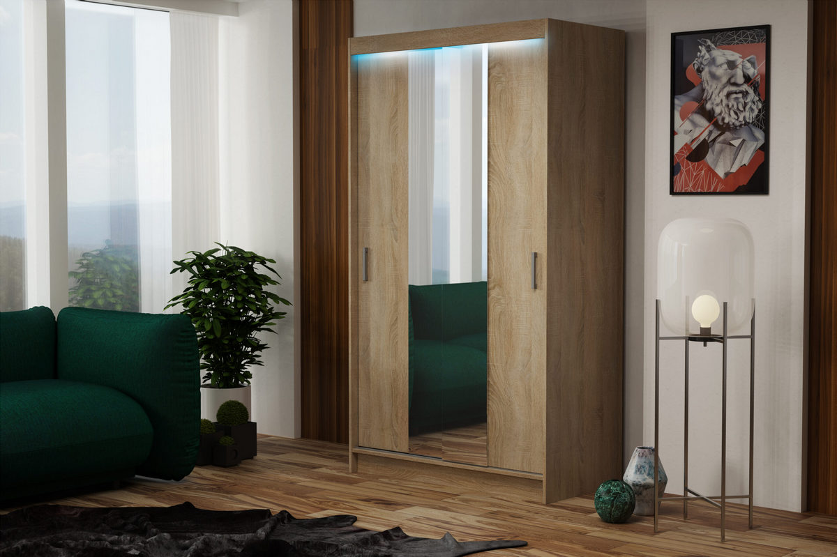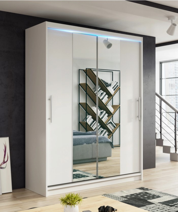 Šatní skříň Nico II představuje ideální volbu pro každého, kdo hledá funkční a stylové řešení pro ukládání oblečení. S jejími posuvnými dveřmi, které obsahují zrcadlo, získáte nejen praktický úložný prostor, ale také opticky zvětšíte váš interiér.