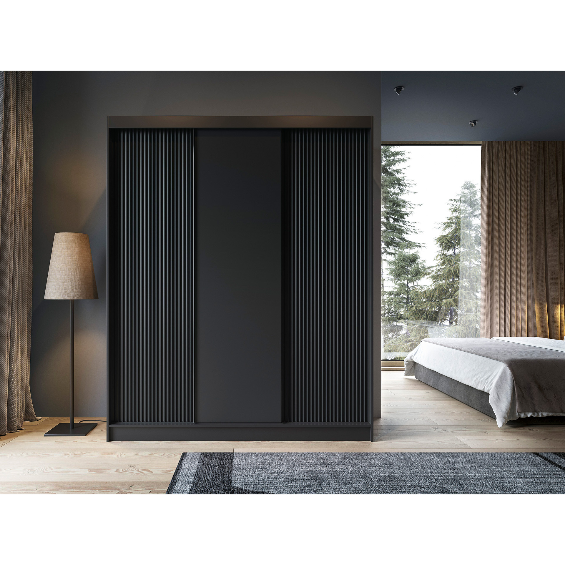 Šatní skříň Prescco III je ideálním řešením pro každou ložnici. Její elegantní černá barva a moderní design posuvných dveří dodávají vašemu interiéru styl a šmrnc. S rozměry 180 cm, výškou 220 cm a hloubkou 60 cm, nabízí dostatek prostoru pro vaše oblečení a doplňky.