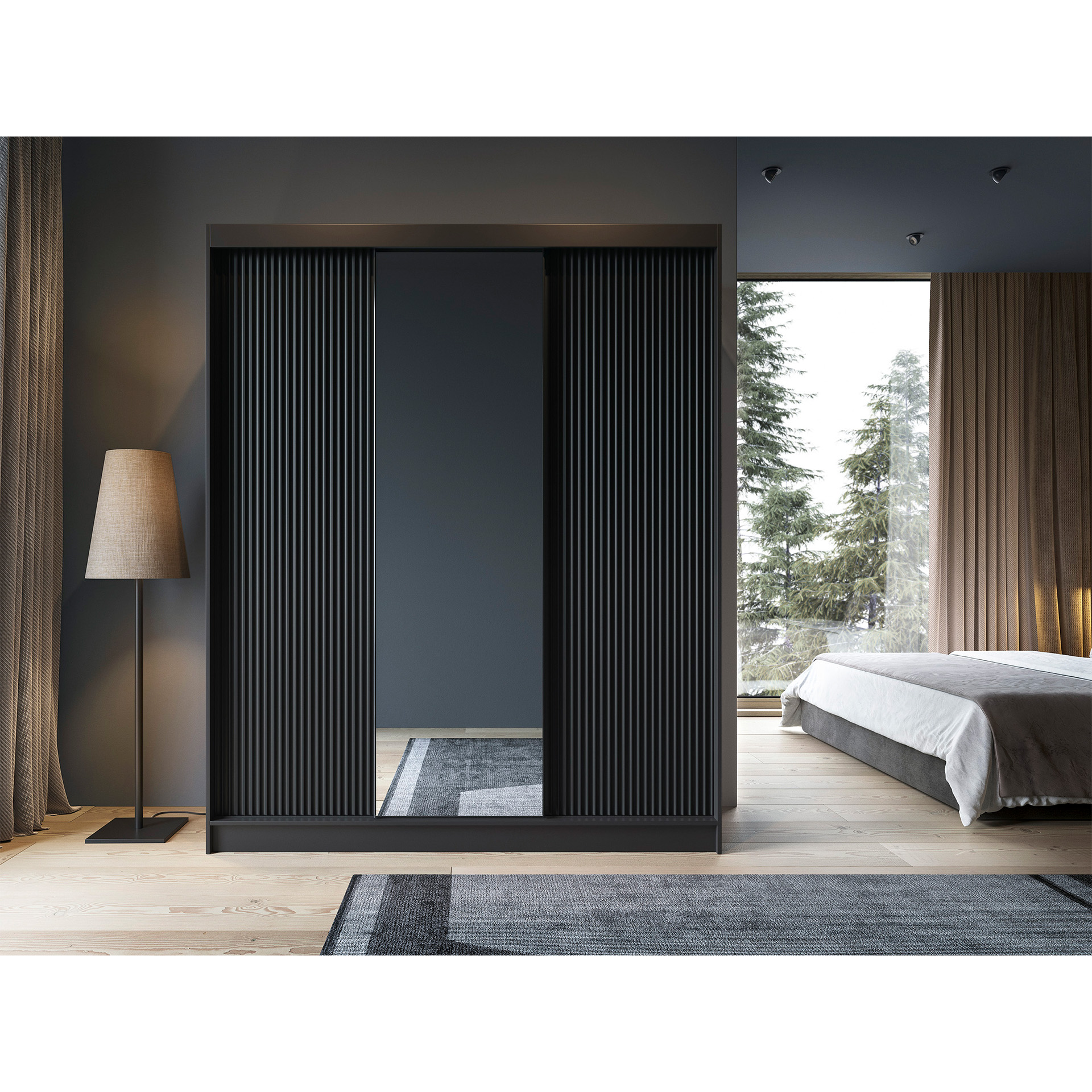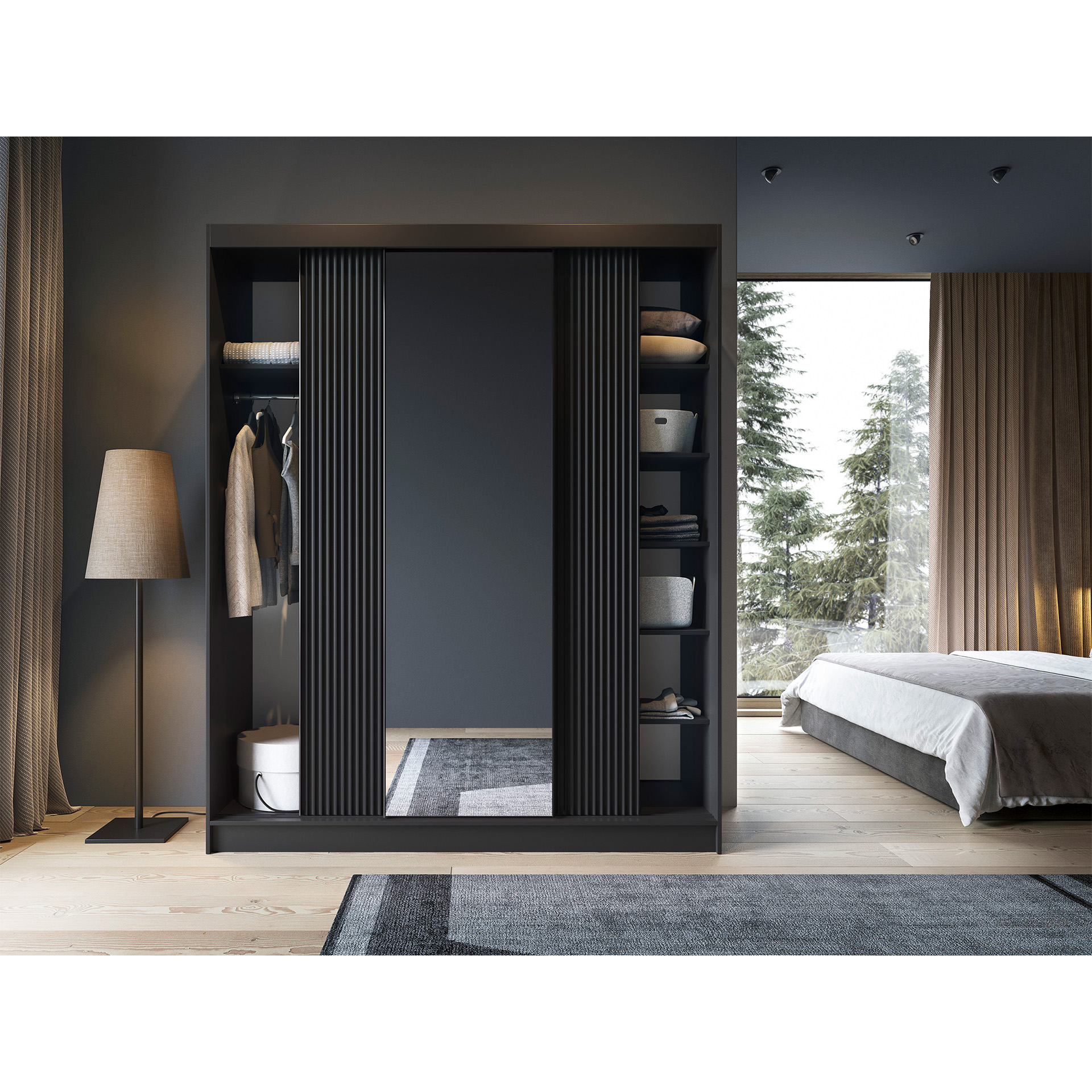 Šatní skříň Prescco III – Černá, 180 cm se zrcadlem