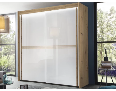 Šatní skříň s osvětlením Imperial, 201 cm, dub artisan/bílé sklo