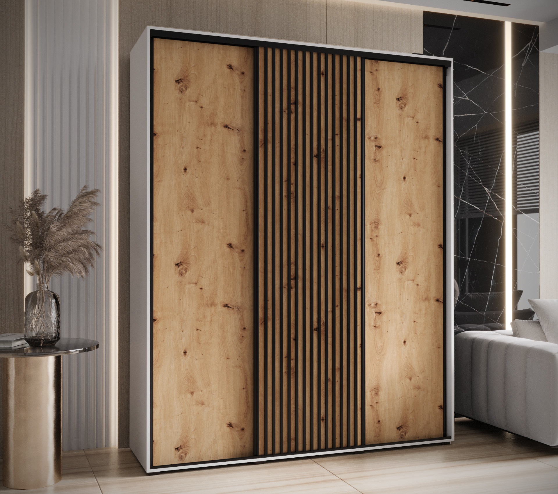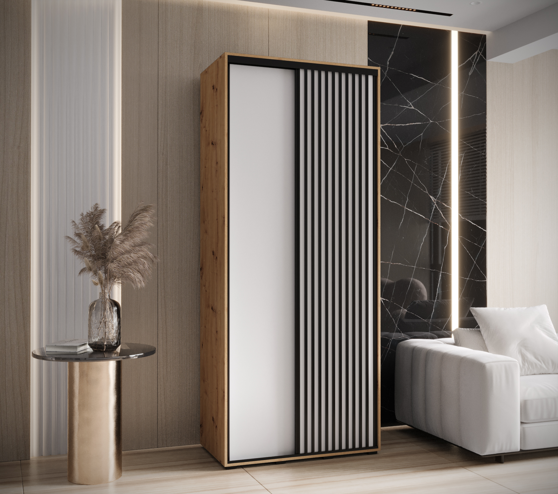 Šatní skříň Sapporo 1 je k dispozici v několika barevných variantách, což vám umožní přizpůsobit ji vašemu interiéru. Můžete si vybrat mezi černou, bílou a dub artisan.
