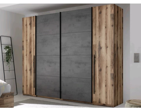 Šatní skříň Sarnia, 312 cm, srubová prkna/tmavý beton