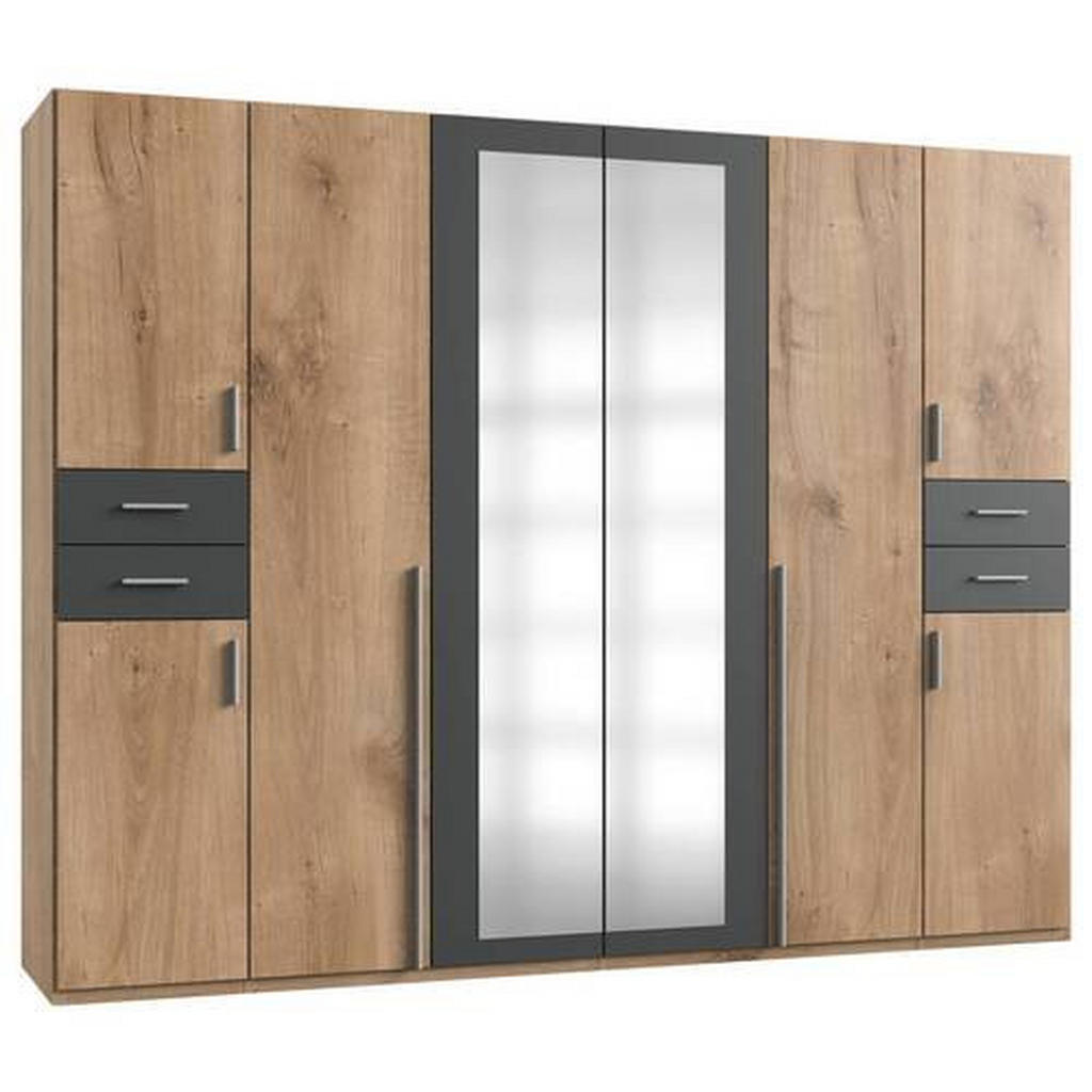 Hledáte praktické a stylové řešení pro uskladnění vašich oděvů a doplňků? Šatní skříň se zrcadlem MID.YOU v kombinaci barev grafitu a dubu splní všechny vaše požadavky. S rozměry 270/208/58 cm nabízí dostatek místa pro vaše oblečení a zároveň se stane elegantním prvkem vaší ložnice.