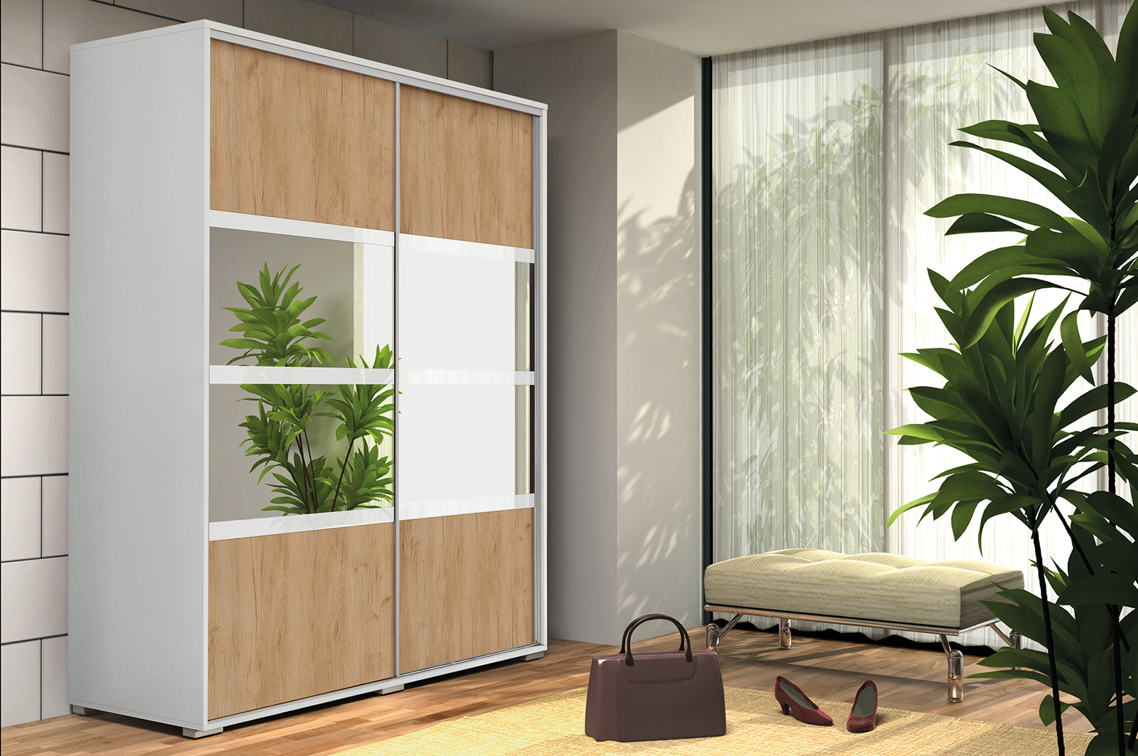 - Systém posuvných dveří: Skříň je vybavena ložiskovým kováním Bimak, které umožňuje snadné a tiché otevírání a zavírání dveří.