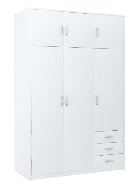 Šatní skříň SWAUN 3 v elegantní bílé barvě je ideálním řešením pro každou domácnost, která hledá kombinaci stylu a funkčnosti. Tato skříň je vyrobena z kvalitního lamina (LTD), které je známé svou odolností vůči vysokým teplotám, poškrábání a nárazům. Díky ABS pásce na hranách je zajištěna dlouhá životnost a ochrana proti poškození.