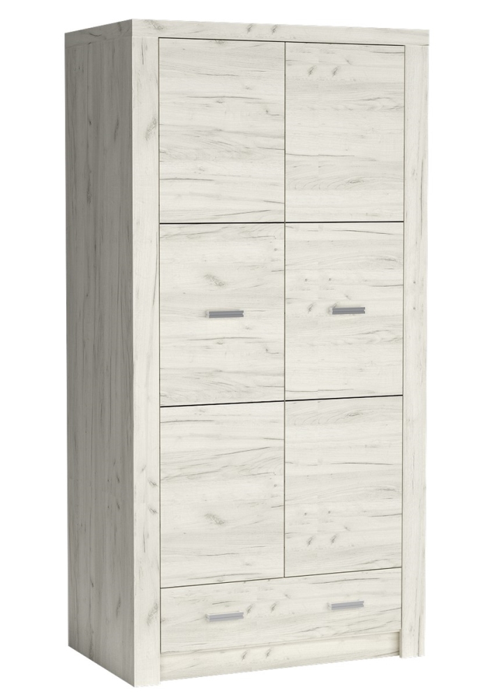 Rozměry skříně jsou 96 cm na šířku, 58 cm na hloubku a 192 cm na výšku, což ji činí dostatečně prostornou pro všechny vaše potřeby. Skříň je dodávána v demontovaném stavu, což usnadňuje její transport a následnou montáž. S jednoduchým návodem si skříň snadno sestavíte sami.
