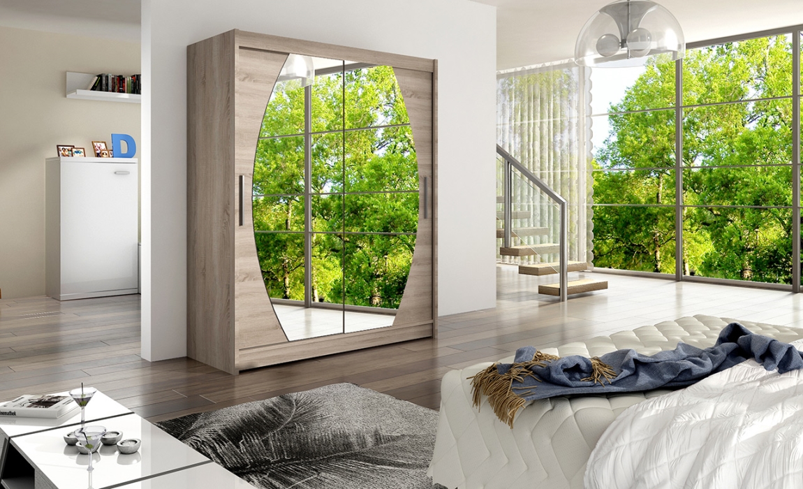 Šatní skříň TABARI VIII je ideální volbou pro ty, kteří hledají styl a funkčnost. Díky atypickému zrcadlu a prostornému úložnému prostoru se stane skvělým doplňkem každého interiéru.