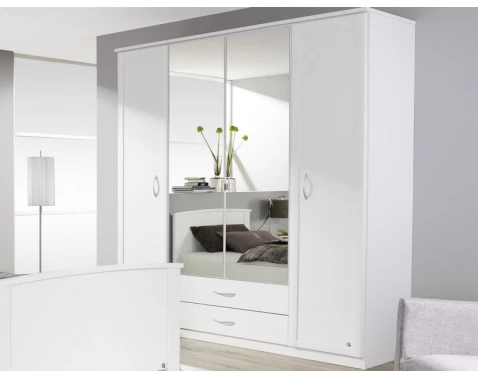 Bílá barva skříně Torrent přináší do vašeho domova svěžest a čistotu. Otočné dveře s velkými zrcadly nejenže opticky zvětší prostor, ale také vám umožní snadno zkontrolovat váš outfit před odchodem. Zrcadla se skvěle hodí do jakéhokoli stylu interiéru, ať už preferujete moderní, minimalistické nebo klasické pojetí.