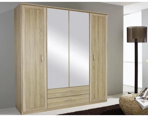 Tato šatní skříň se vyznačuje elegantní profilací a otočnými dveřmi, které zajišťují snadný přístup k obsahu skříně. Velká zrcadla na dveřích opticky zvětšují prostor a přidávají na stylu. Kvalitní materiály a pečlivé zpracování zaručují dlouhou životnost a spokojenost s užíváním.