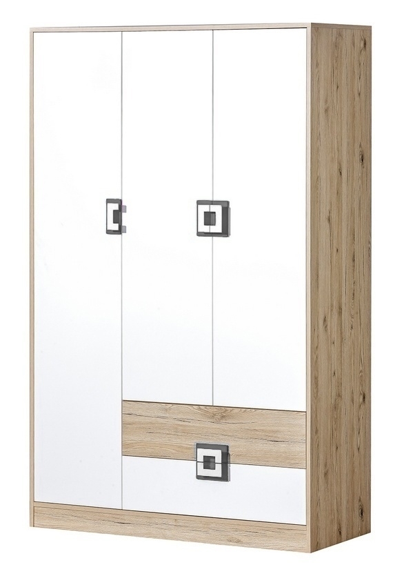Šatní skříň UWARA – dub jasný/bílá/popel