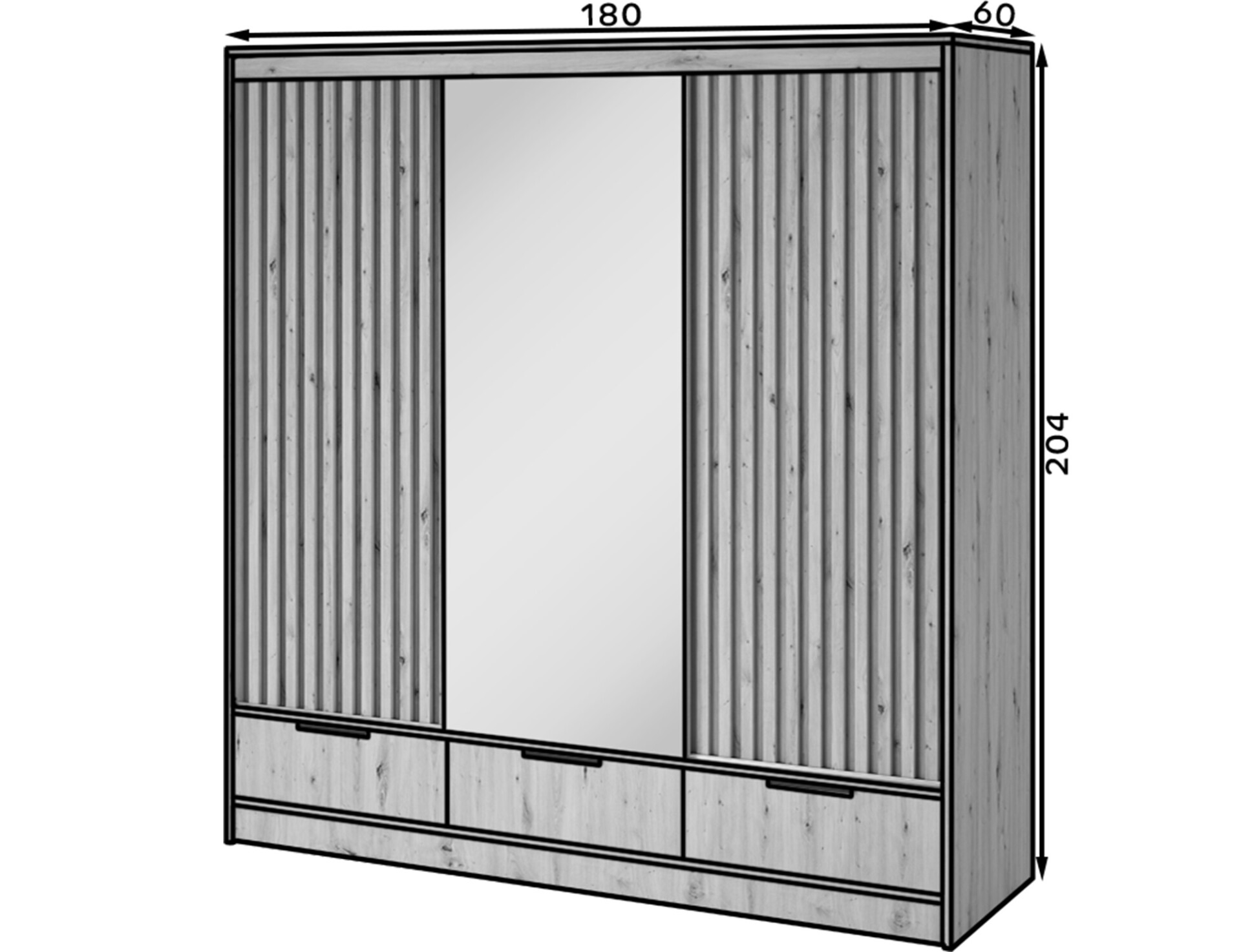 Šatní skříň Voodi III je dostupná v odstínu dub artisan, který dodává prostoru příjemnou atmosféru a harmonii. Její design je doplněn o moderní lamely a zrcadlo, což skříni přidává na atraktivitě a funkčnosti.
