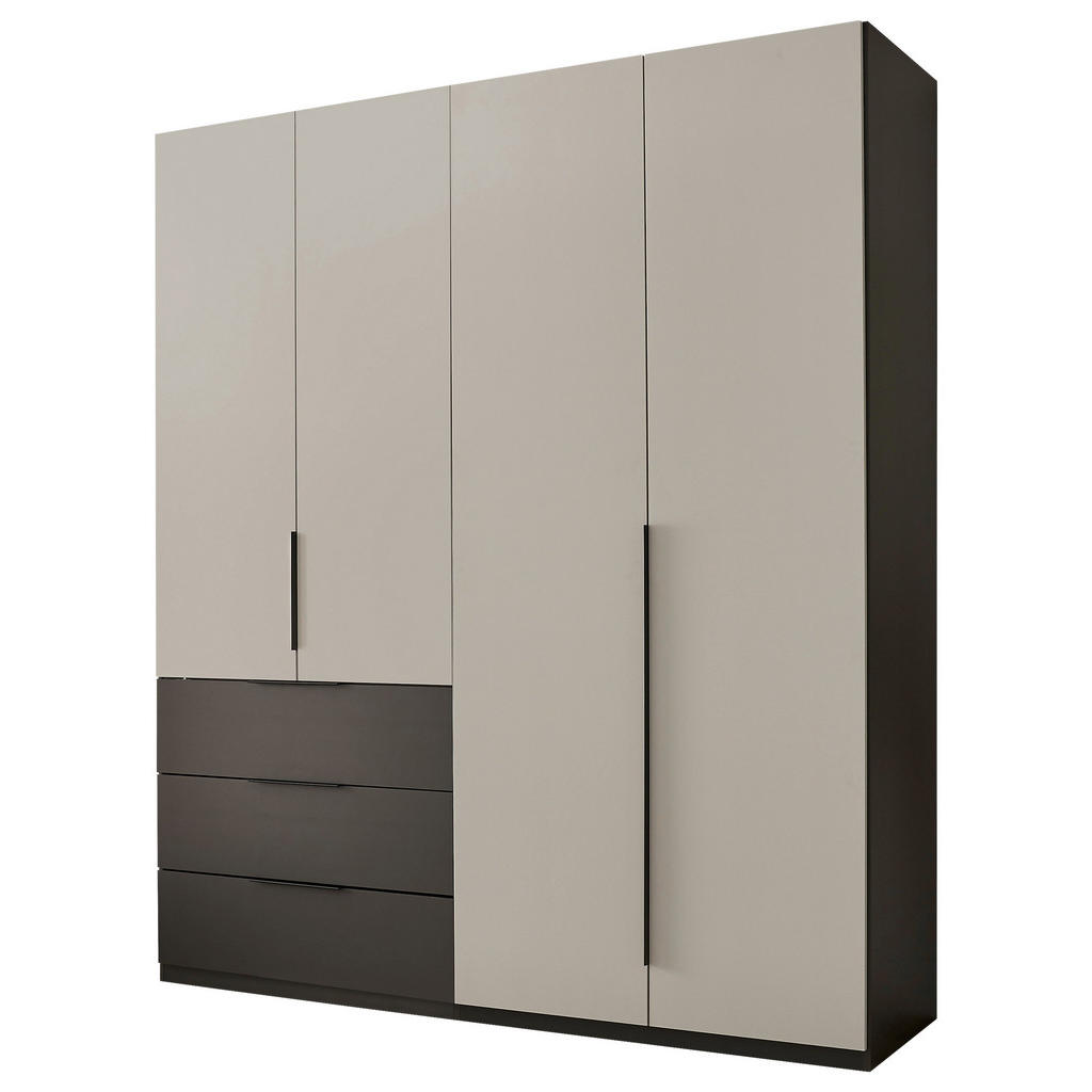 Skříň je vyrobena v elegantních barvách grafitu a světlé šedé, které dokonale zapadnou do jakéhokoli interiéru. Její minimalistický vzhled a čisté linie dodávají prostoru moderní nádech.