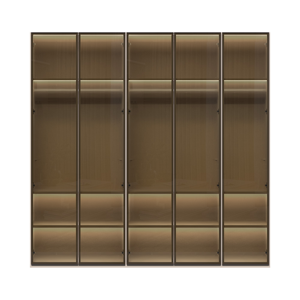 Zvolte skříň OPERA pro elegantní a funkční řešení úložného prostoru. Skleněné dveře a hliníkový rám dodají vašemu interiéru moderní vzhled.