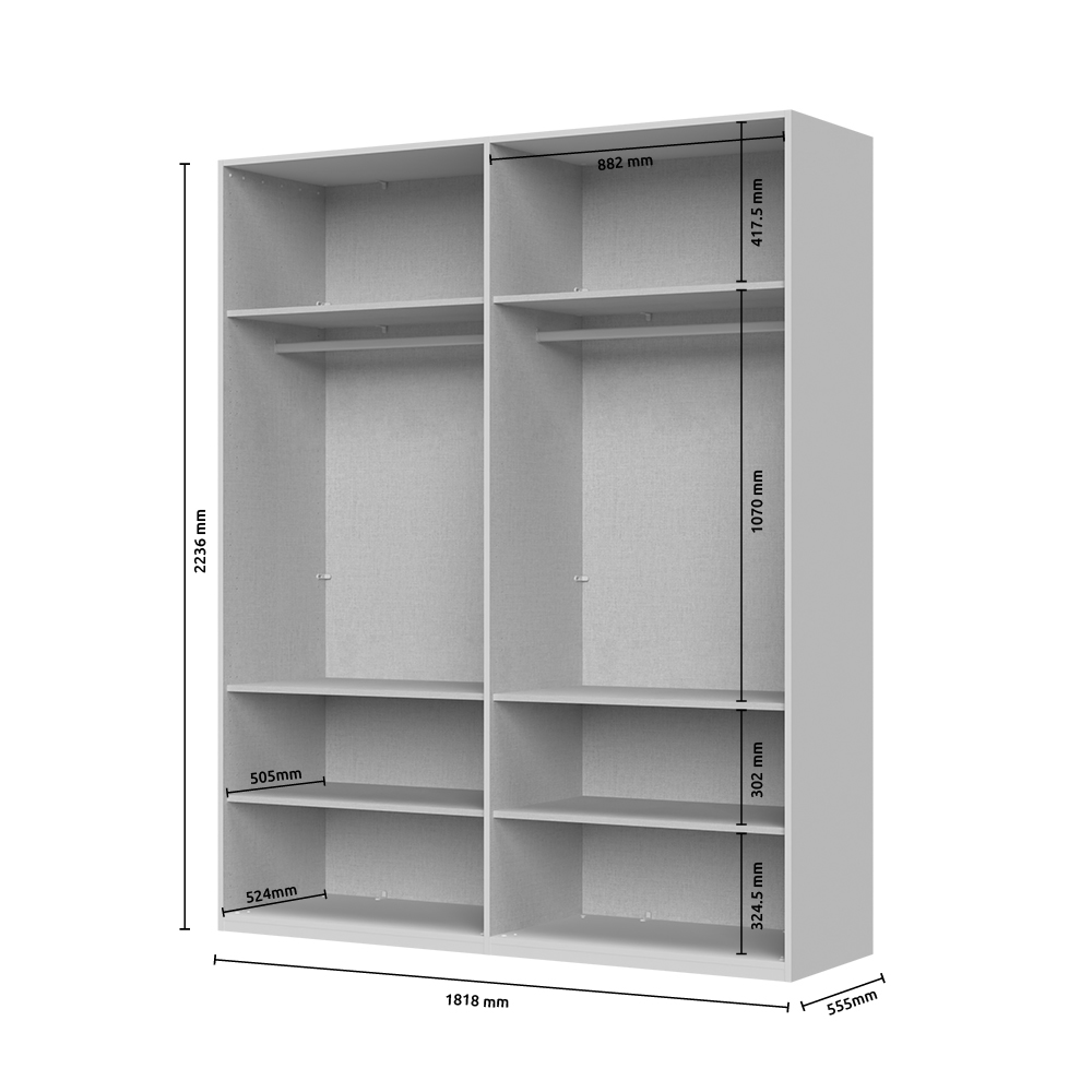 - Šest polic a dvě šatní tyče pro maximální úložný prostor.