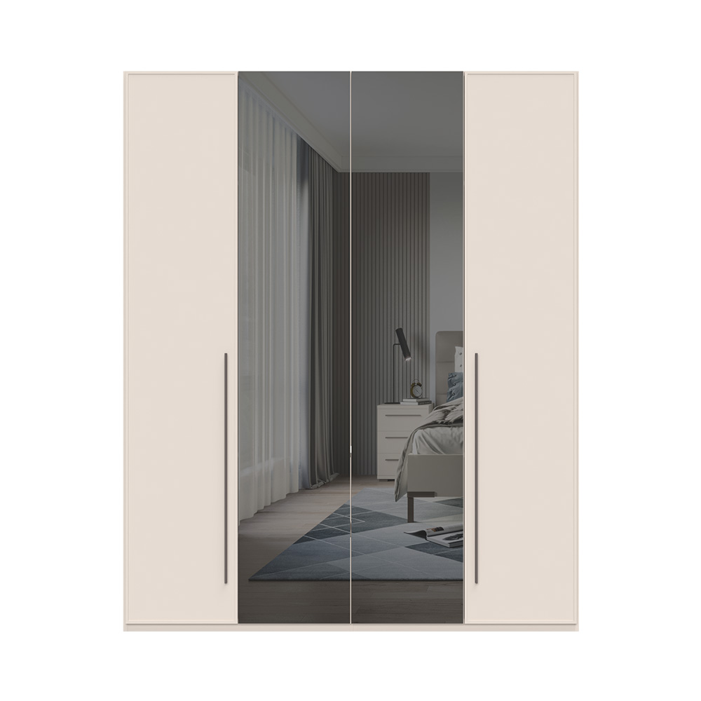 - Dveře skříně jsou vybaveny zrcadly, která opticky zvětšují prostor a přidávají na eleganci.