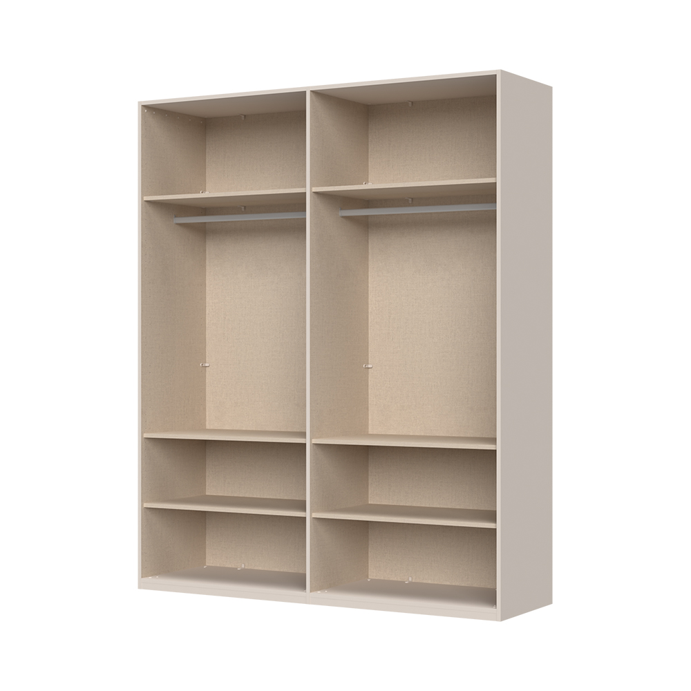 Sestava skříní OPERA nabízí šest polic a dvě šatní tyče, které poskytují dostatek úložného prostoru pro vaše oblečení a další věci. Díky možnosti přidání dalšího vybavení si můžete interiér skříně přizpůsobit podle svých potřeb.