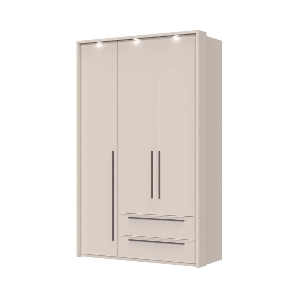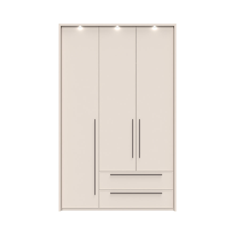 Sestava skříní OPERA je výjimečným kouskem, který kombinuje moderní design s praktickými funkcemi. Je vyrobena z kvalitních materiálů, které zaručují dlouhou životnost a spokojenost. Skříňový korpus má tloušťku do 25 mm a je opatřen měkkým matným UV lakem v elegantní barvě Cashmere. Přední strana skříně, s tloušťkou 19 mm, je také pokryta tímto sofistikovaným lakem a zdobena dekorativním profilovaným MDF rámem.