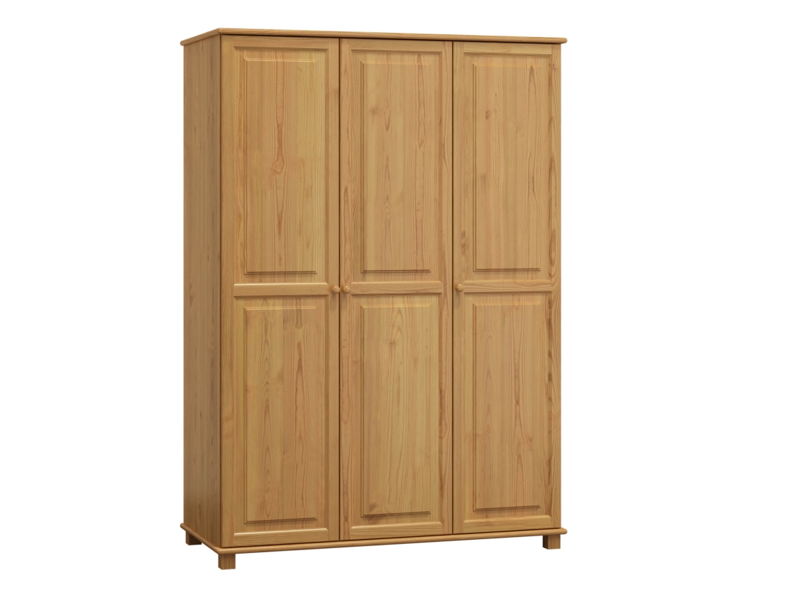 Šatní skříň 3D BHAGIRA 2 je ideálním řešením pro všechny, kteří hledají prostorný a stylový nábytek do svého domova. Tato třídveřová skříň je vyrobena z kvalitního masivního borovicového dřeva, což zaručuje nejen dlouhou životnost, ale i příjemný přírodní vzhled. Díky tloušťce materiálu 2,6 cm je skříň robustní a stabilní, což oceníte zejména při každodenním používání.