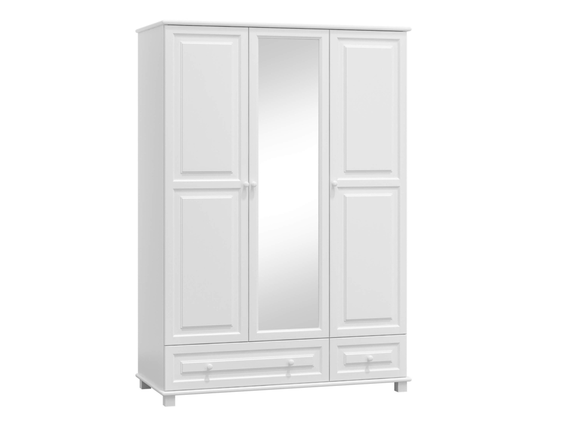 Tato skříň je vyrobena z masivní borovice, což jí dodává přírodní vzhled a pevnost. Bílá barva moření vytváří svěží a moderní dojem, který se hodí do různých interiérů. Zrcadlo na přední straně skříně opticky zvětšuje prostor a přidává na funkčnosti.