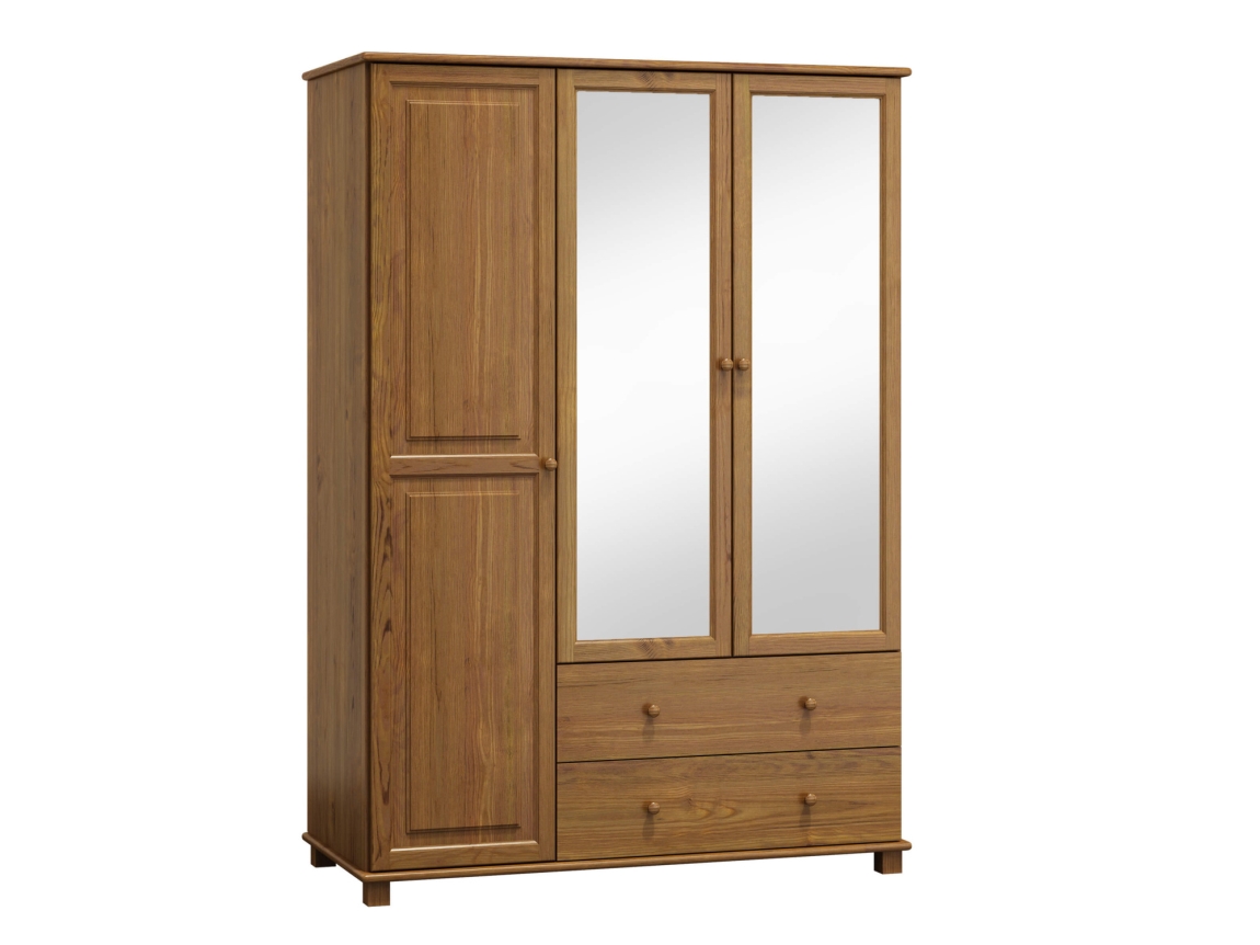 Tato šatní skříň z masivu borovice kombinuje kvalitu a styl, ideální pro vaši ložnici. S elegantním zrcadlem a prostorným uskladněním se stane praktickým pomocníkem.