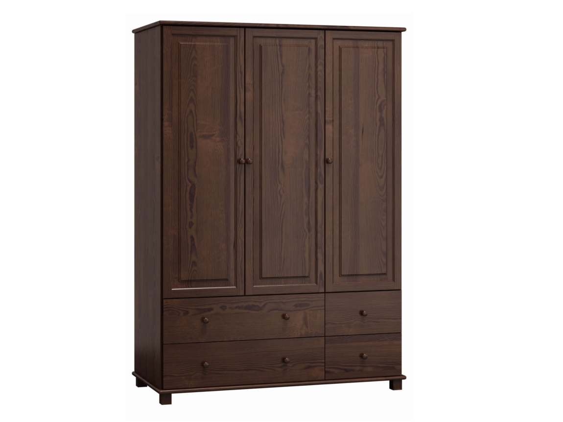 Skříň je vyrobena z kvalitního masivu borovice, jehož tloušťka dosahuje 2,6 cm. Tento materiál zaručuje vysokou odolnost a dlouhou životnost. Barva moření v odstínu ořech dodává skříni elegantní a moderní vzhled, který se snadno kombinuje s dalšími kusy nábytku.