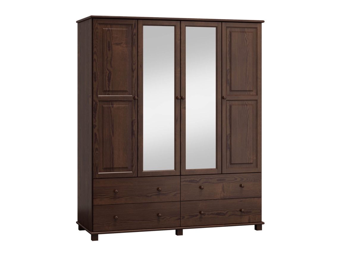Hledáte ideální šatní skříň, která kombinuje funkčnost a estetiku? Skříň 4D BHAGIRA 4 je perfektní volbou pro všechny, kteří chtějí zútulnit svůj domov kvalitním nábytkem. Tato šatní skříň o šířce 180 cm je vyrobena z masivního borovicového dřeva, které zajišťuje dlouhou životnost a odolnost.
