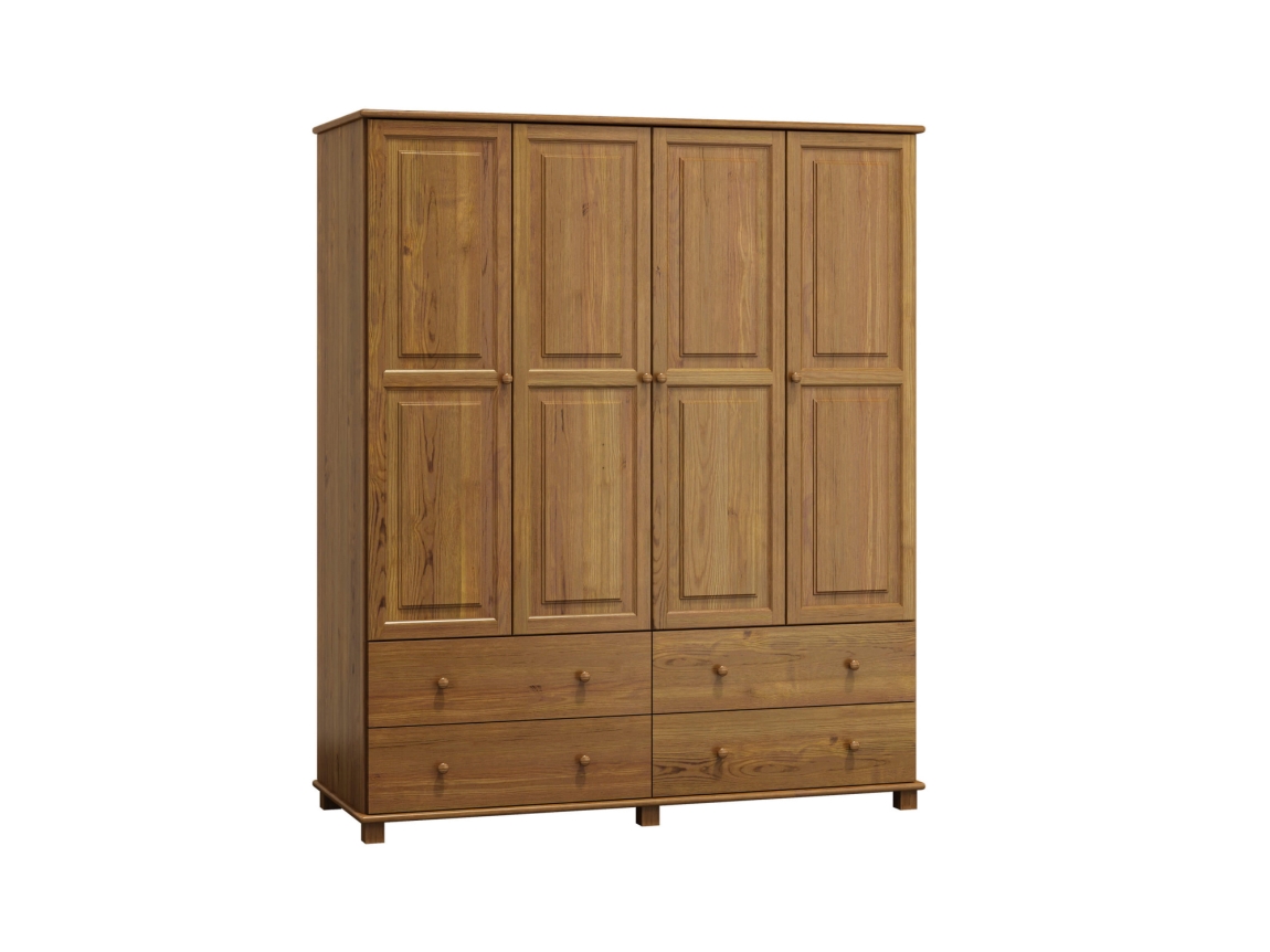 Pokud hledáte šatní skříň, která spojuje kvalitu a moderní design, šatní skříň 4D BHAGIRA 6 je ideální volbou. Tato čtyřdveřová skříň z masivní borovice s tloušťkou 2,6 cm přináší do vašeho interiéru nejen funkčnost, ale i styl.