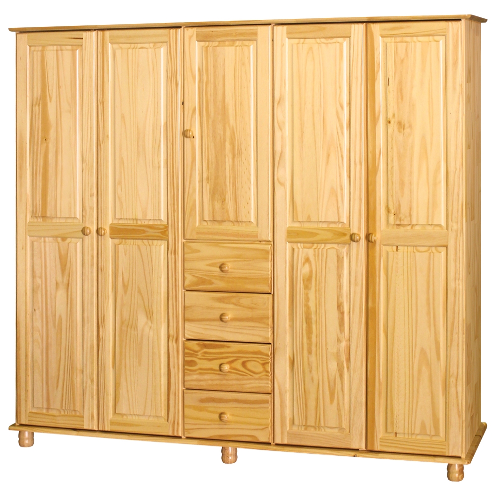 Skříň 5dveřová BRIGGS je ideálním řešením pro ty, kteří hledají kvalitní a prostorný nábytek do svého domova. Vyrobena z masivu borovice, skříň se vyznačuje nejen svou odolností, ale také elegantním a nadčasovým designem.