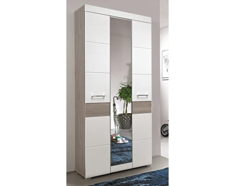 Stylová skříň Funny představuje ideální kombinaci moderního designu a kvalitního zpracování, která obohatí váš domov. V bílém provedení s šedo-béžovými tóny dubového dřevodekoru se stane dominantou vaší ložnice nebo obývacího pokoje. Její elegantní vzhled zapadne do různých stylů interiéru, od minimalistického po skandinávský.