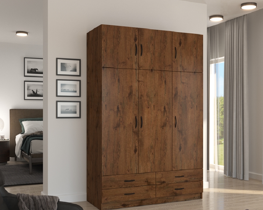 Skříň je vyrobena z kvalitního lamina, které zajišťuje dlouhou životnost a snadnou údržbu. Dekor v dubu lefkas přináší do vašeho domova přírodní nádech a moderní vzhled. Kombinace polic, šatní tyče a zásuvek poskytuje dostatek místa pro všechny vaše věci, od oblečení po doplňky.
