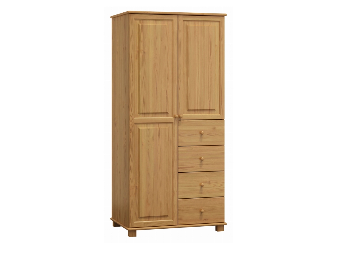 Kombinovaná šatní skříň BHAGIRA 3 z masivu borovice nabízí dostatek úložného prostoru a elegantní design. Vhodná pro každou místnost vašeho domova.