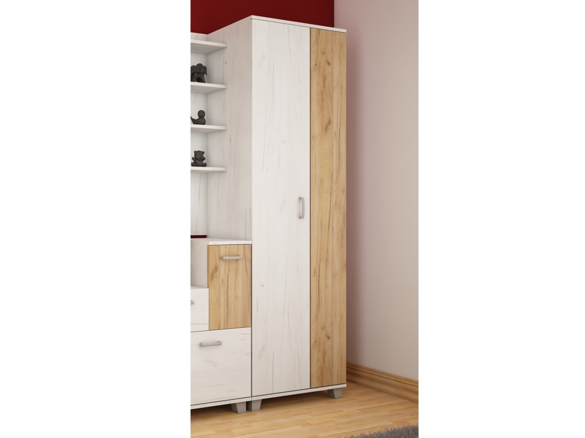 Skříň NALISE spojuje moderní design s praktičností a kvalitou. Její kombinace craft bílého a craft zlatého odstínu dodává každému interiéru šmrnc a eleganci. Tato skříň je ideální volbou pro ty, kteří hledají stylové a funkční úložné řešení.