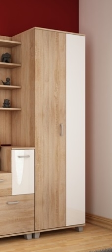 Skříň je vyrobena z kvalitního lamina o tloušťce 16 mm, což zaručuje její odolnost a dlouhou životnost. Barva dub sonoma světlý v kombinaci s bílým leskem dodává skříni moderní a elegantní vzhled, který se hodí do různých interiérů, ať už se jedná o ložnici, dětský pokoj nebo předsíň.