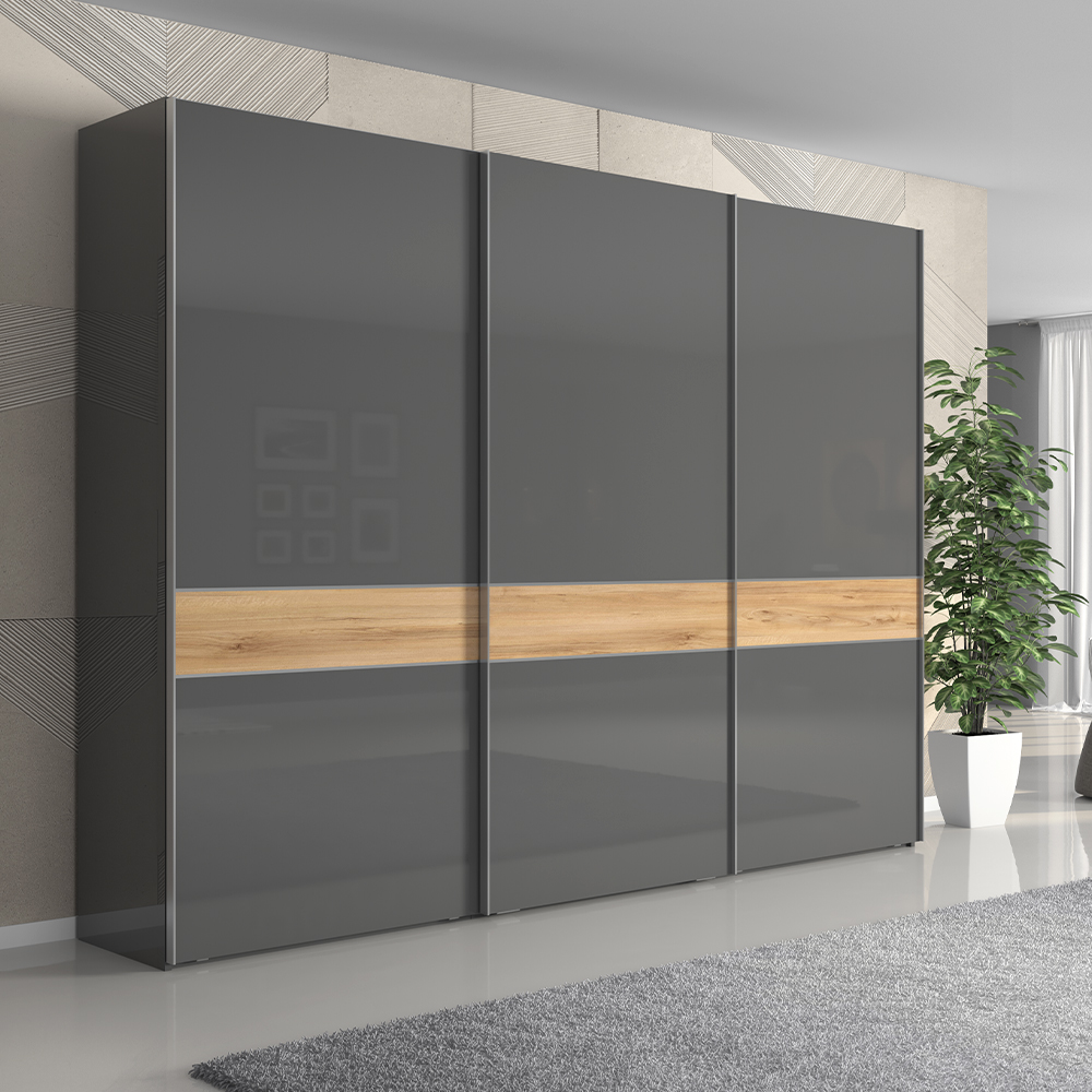 Skříň ONYX – Antracit lesk s ořechovým dekorem