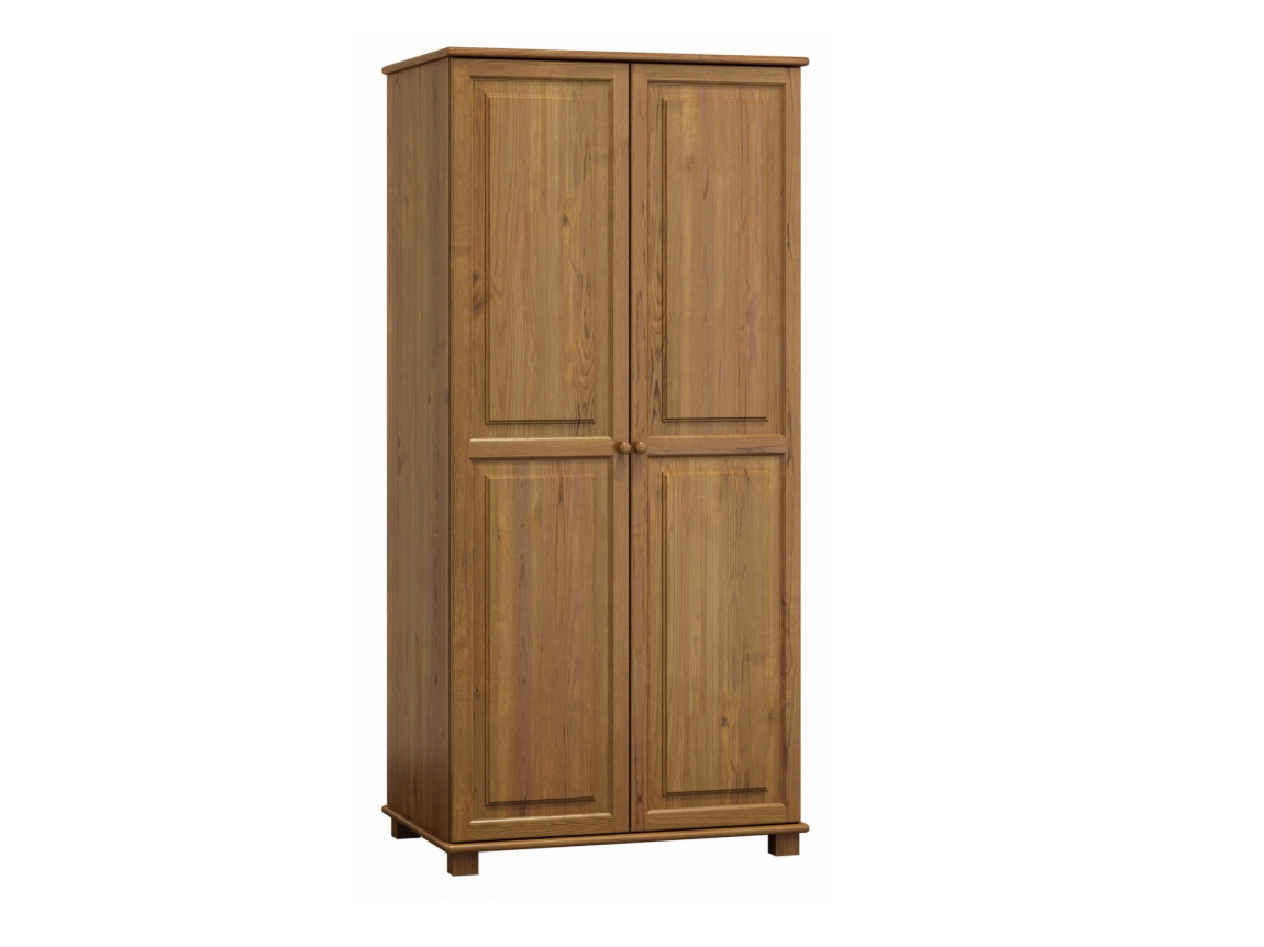 Skříň je vyrobena z masivní borovice o tloušťce 2,6 cm, což zajišťuje její pevnost a stabilitu. Dubové moření dodává skříni přírodní a teplý vzhled, který se snadno kombinuje s různými interiérovými styly. Klasický design s jednoduchými liniemi a elegantními detaily přitahuje pozornost a dodává prostoru na atraktivitě.