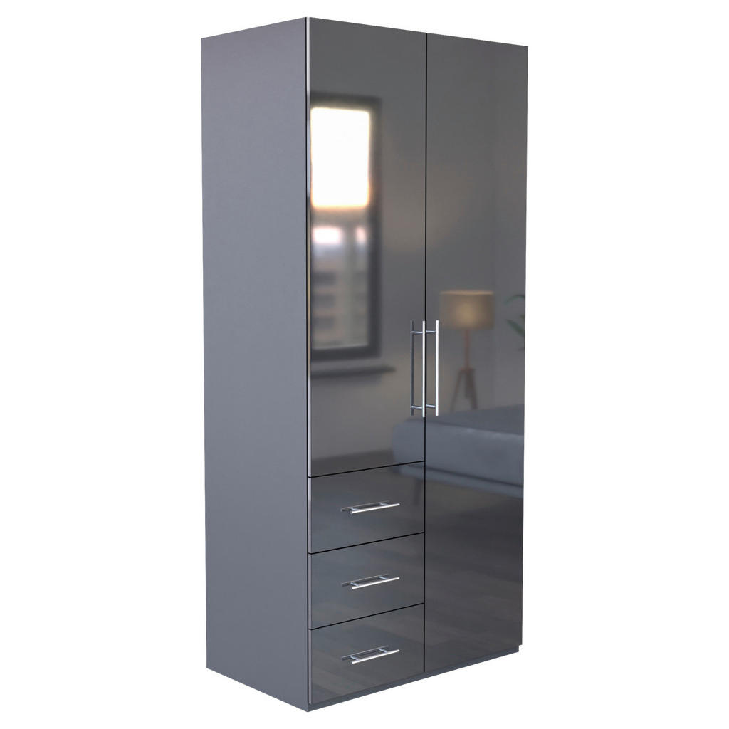 Skříň se vyznačuje elegantním designem a nadčasovou antracitovou barvou, která dodá vašemu pokoji stylový vzhled. Lesklý povrch fronty skříně odráží světlo a opticky zvětšuje prostor, což je ideální pro menší pokoje.