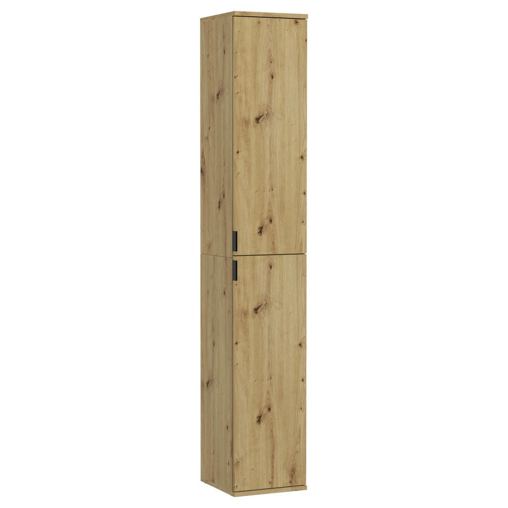 Skříň je vyrobena z kvalitního materiálu, který napodobuje vzhled dřeva, konkrétně Artisan Eiche Nachbildung. Tento materiál dodává skříni elegantní a moderní vzhled, který se přizpůsobí různým interiérům. Otočné dveře zajišťují snadný přístup k obsahu skříně a zároveň šetří prostor, což je ideální pro menší pokoje.