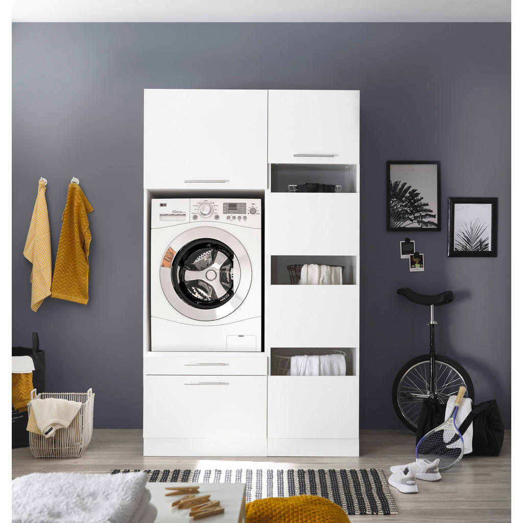 Technická místnost Respekta s rozměry 117,4 cm na šířku, 200 cm na výšku a 67,6 cm do hloubky představuje skvělý způsob, jak efektivně uspořádat váš prostor. Její moderní design v bílé matné barvě dodává každému interiéru elegantní vzhled, který se hodí do různých stylů bydlení.