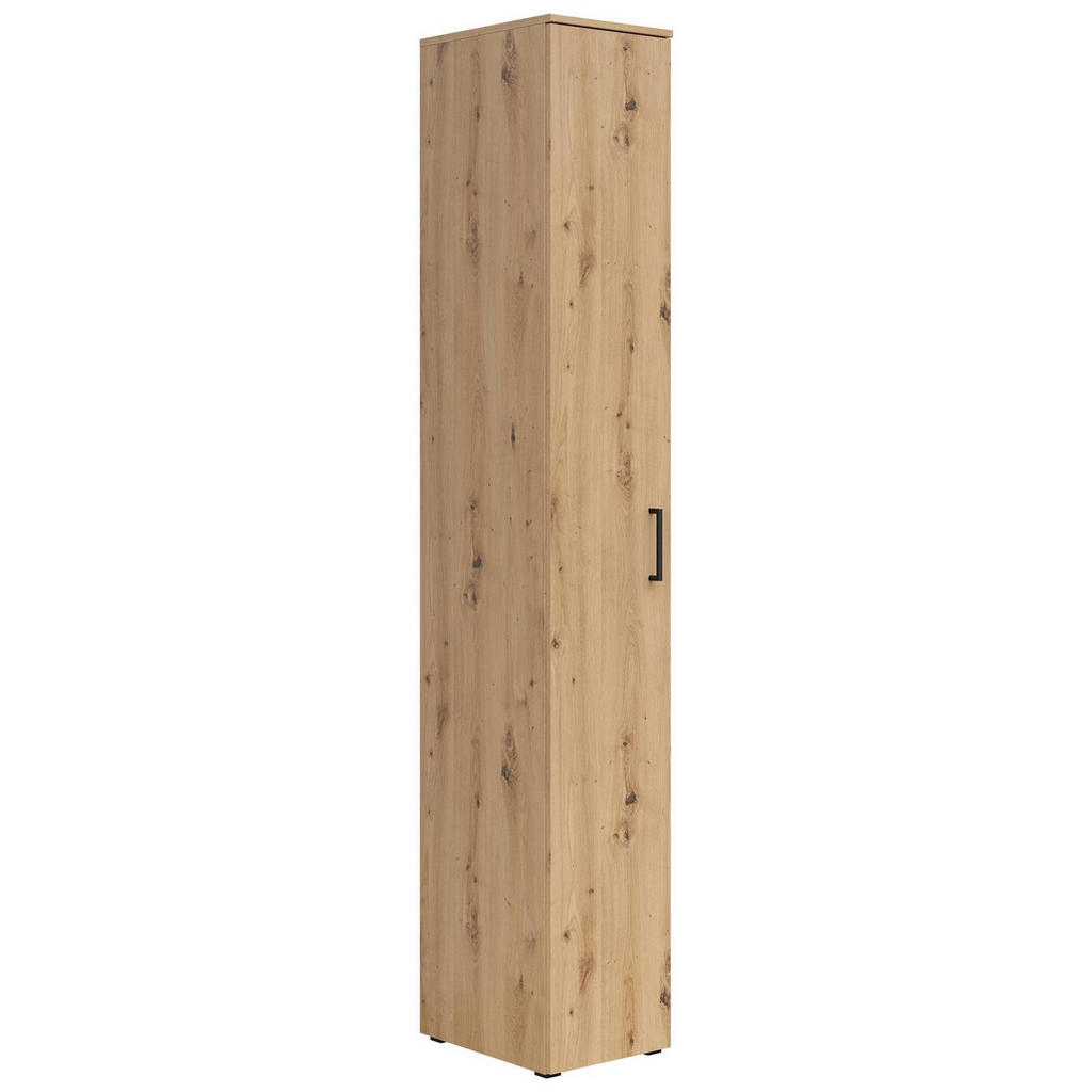 Skříň je vyrobena z odolného materiálu, který zajišťuje dlouhou životnost. Dub artisan dodává interiéru přirozený a moderní vzhled, což ji činí skvělým doplňkem pro různé styly bydlení.