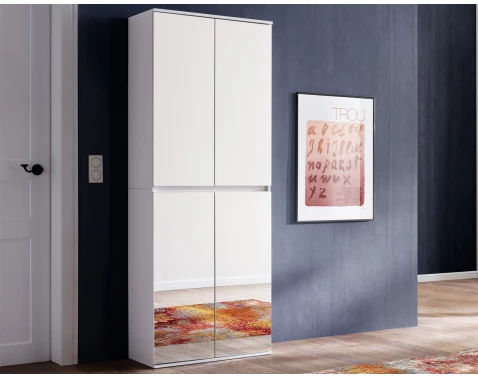 Domů / Šatní skříně / Předsíňové skříně / Předsíňové šatní skříně s otočnými dveřmi / Zrcadlová víceúčelová skříň s policemi Mirror, 74 cm, bílá